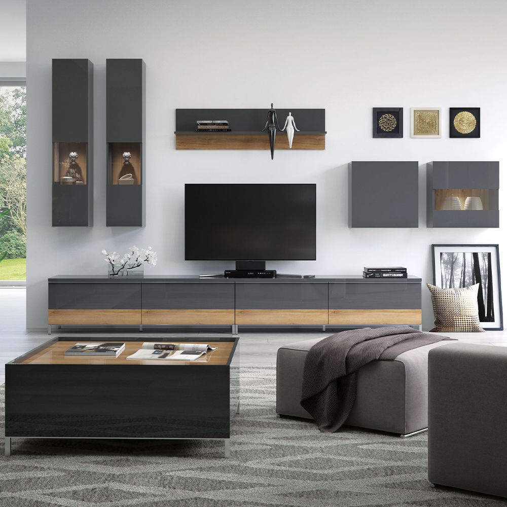 * vidljivi delovi elementa lakirani su UV lakom u visokom sjaju u artaktivnoj Antracit boji sa aplikacijama u drvodekoru Pacifik orah