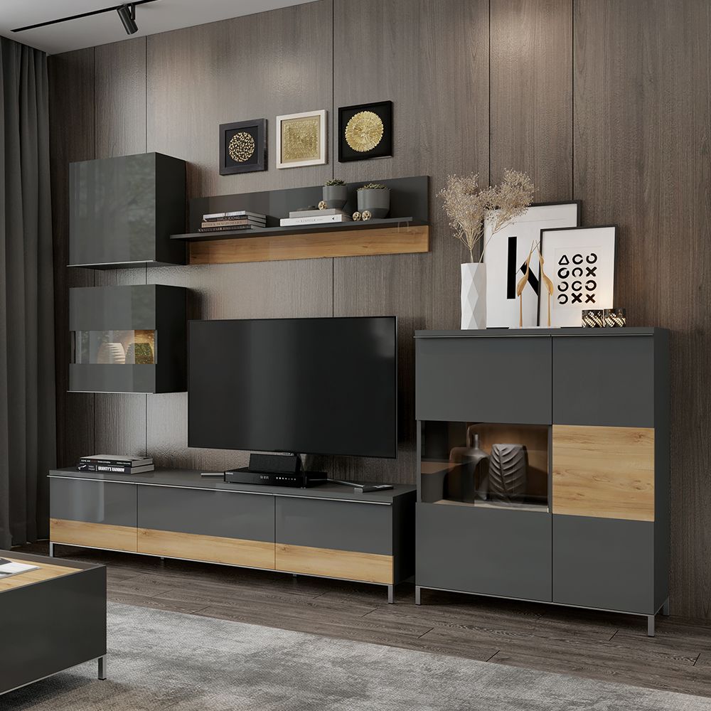 * vidljivi delovi elementa lakirani su UV lakom u visokom sjaju u artaktivnoj Antracit boji sa aplikacijama u drvodekoru Pacifik orah