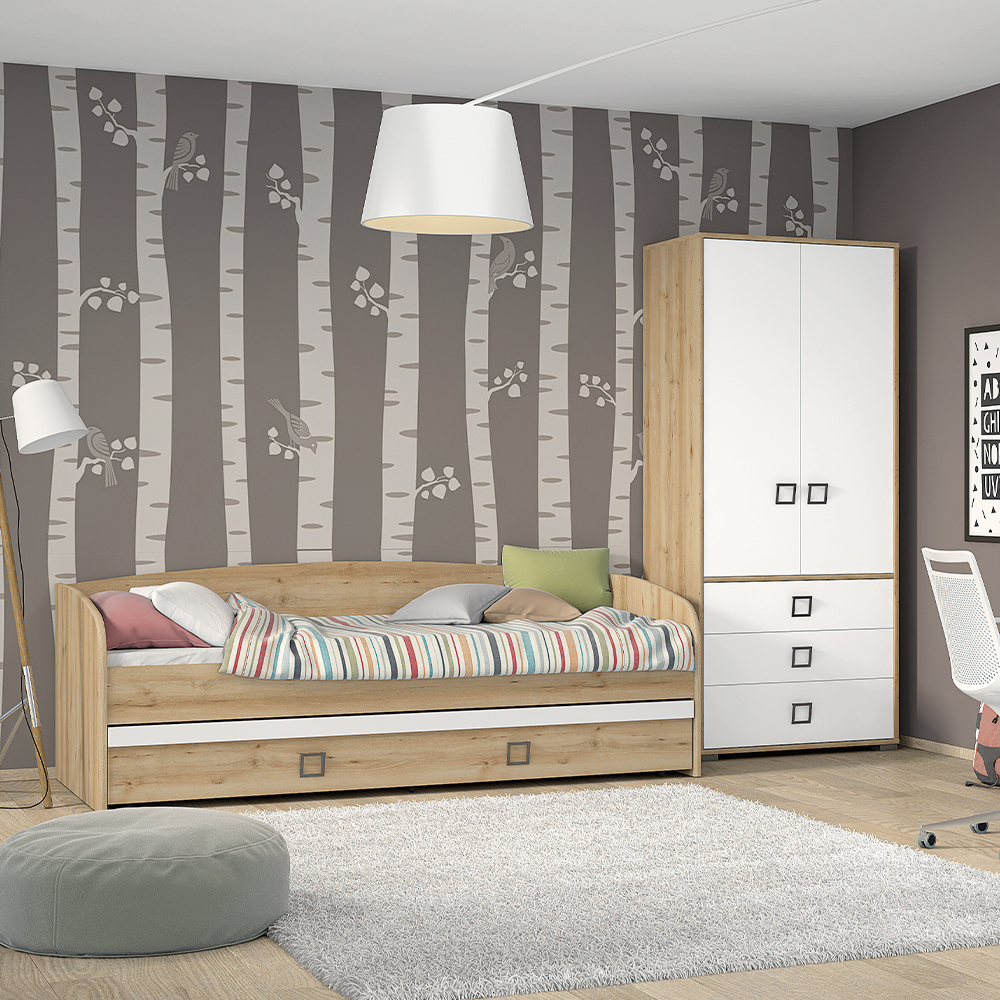 Krevet za dečiju sobu, iz kolekcije KIKI,sa tablom za naslon, prilagođen svakom uzrastu