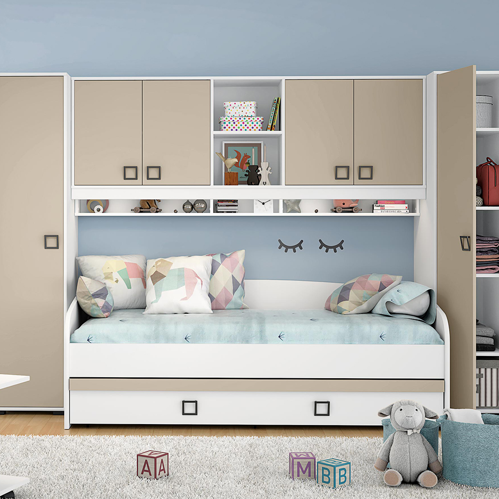 Most kreveta sa dva krila, iz asortimana dečijih soba KIKI, za maksimalno iskorišćenje prostora iznad kreveta. Element se montira između dva garderobera ili plakara.